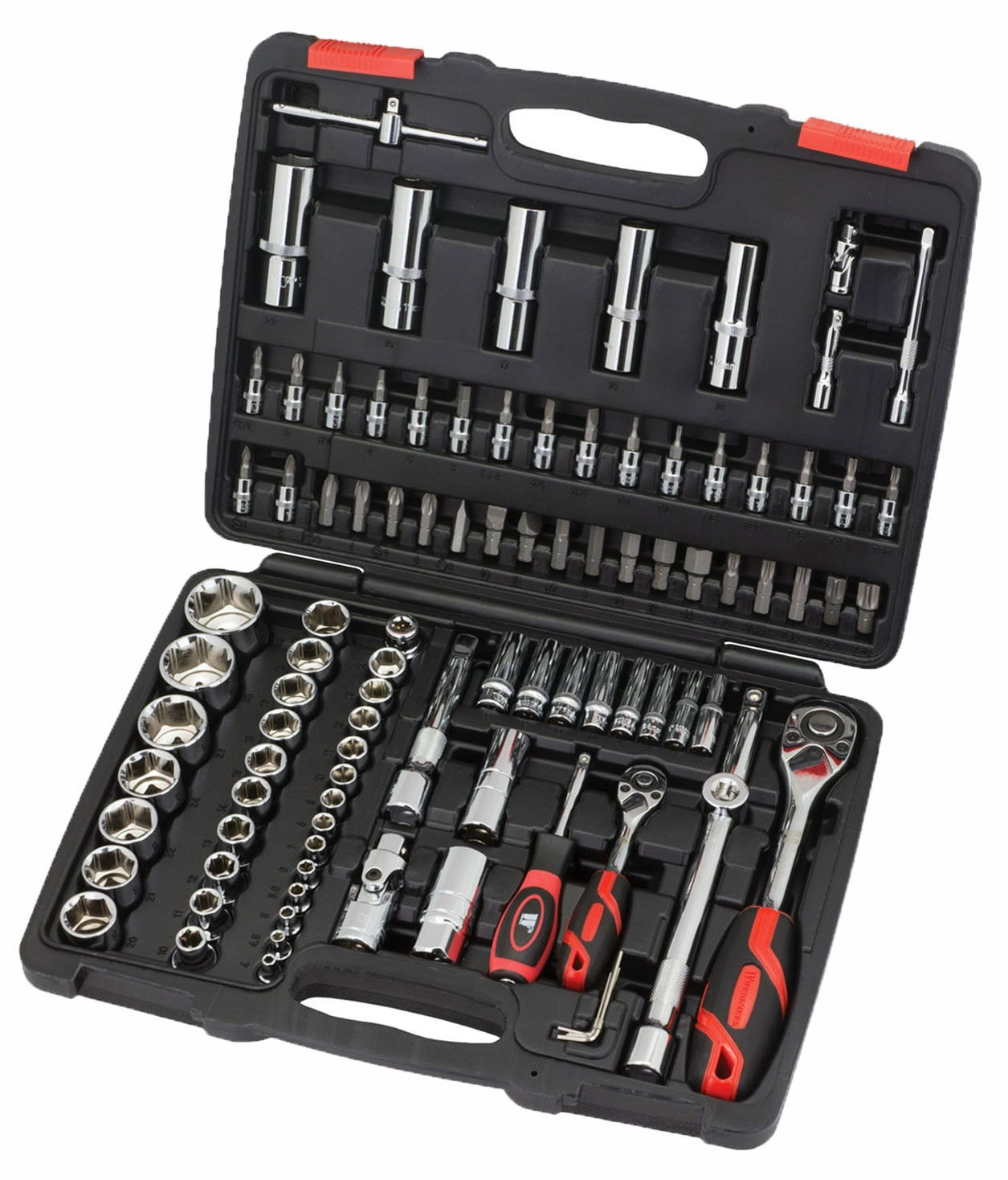 Dugókulcs készlet 1/4"-os és 1/2"-os, 6 lap fejű, 95 darabos készletben, erős Chrome-Vanádium acélból készült skót ipari minőségű.
